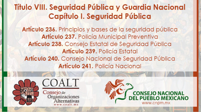 Cada Consejo Político Estatal convocará a l@s jefes de policía de los municipios del estado para integrarlos como Consejo Estatal de Seguridad Pública, el cual elegirá al Coordinador Estatal de Seguridad Pública, quien durará en su encargo 3 años y podrá ser reelect@ para un período similar. El Consejo Estatal de Seguridad Pública podrá remover y sustituir al Coordinador Estatal de Seguridad Pública, en cualquier momento, con base en las causas y procedimientos establecidos por la Ley. El Consejo Municipal de donde provenga el Coordinador Estatal de Seguridad Pública elegirá a un nuevo Jefe de la Policía Municipal, quien como tal participará en el Consejo Estatal de Seguridad Pública. En el mes de febrero de cada dos años, el Consejo Estatal de Seguridad Pública, presentará al Consejo Político Estatal el Plan de Seguridad Pública Bianual para el estado respectivo, para su análisis y aprobación. Una vez aprobado, el Consejo Estatal de Seguridad Pública se encargará de su ejecución, de lo cual presentará un informe detallado junto con el plan bianual siguiente.